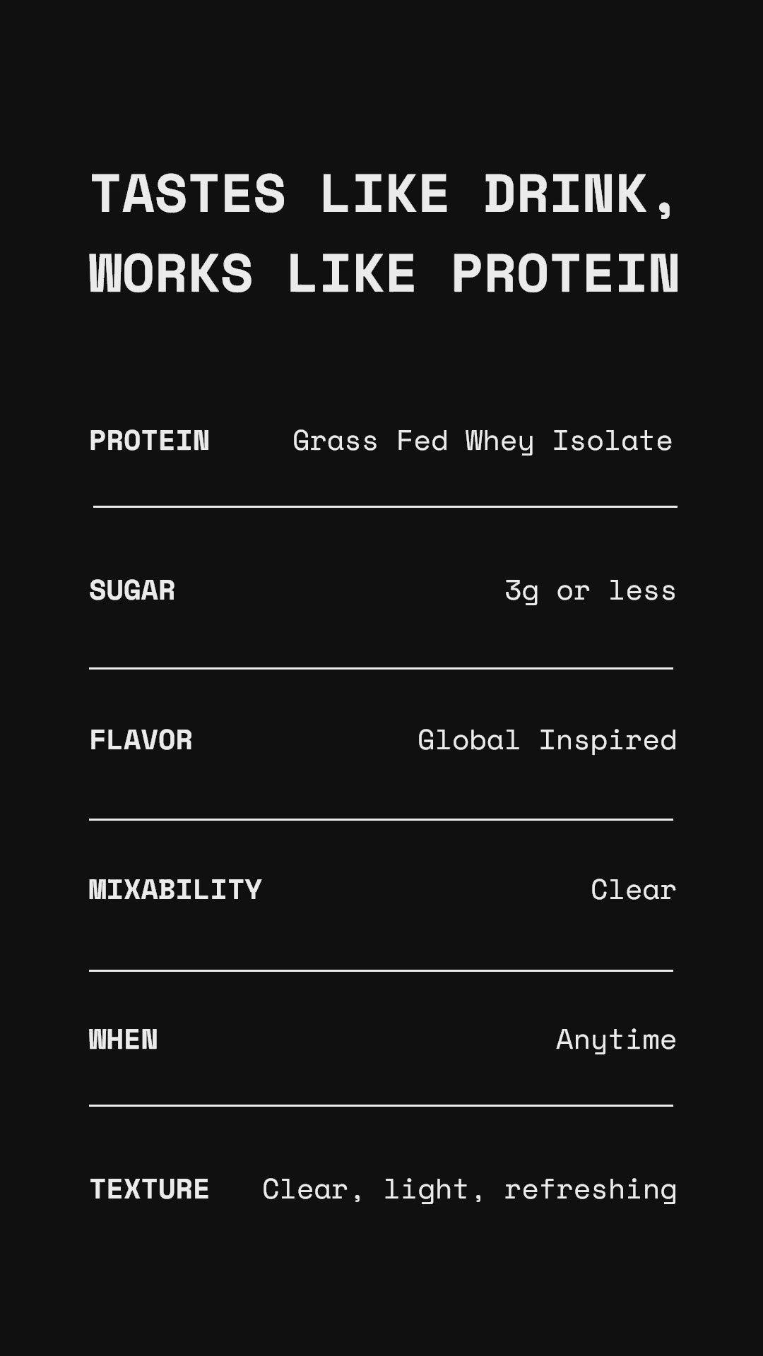 Our unique clear protein formula blends seamlessly with water for a crisp, juice-like drink.